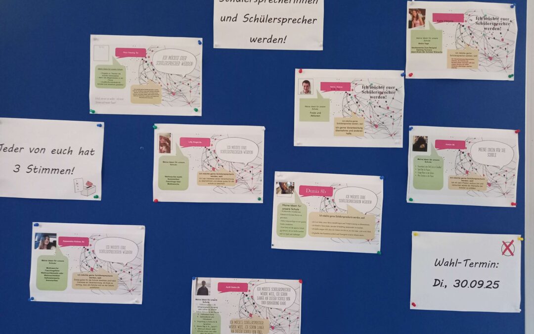 Morgen wird wieder demokratisches Handeln in unserer Schule gelebt. Alle 226 Schülerinnen und Schüler sind dazu aufgerufen, ihre Schülersprecher und Schülersprecherinnen zu wählen. Zur Wahl stehen 8 Kontrahenten. Es wird wohl spannend, wer das Vertrauen der Schülerschaft erhält. Ein herzlichen Dank an alle, die sich wählen lassen wollen und auch an Herrn Hollweck, der die Wahl organisiert.
