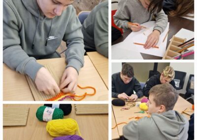 Viel Praxis und eigene Kreativität war das Programm des Vormittags für die Schülerinnen und Schüler der 8.Klassen unter Begleitung von Frau Braun und Herrn Hollweck (Klassenleiter). Stolz präsentierten sie ihre Werke, die zur Gestaltung des neuen Lernhauses verwendet werden.
