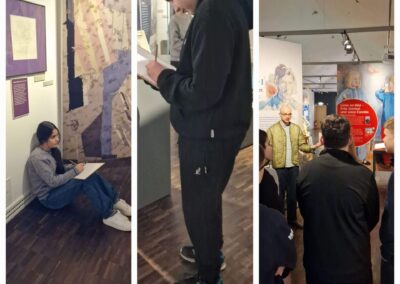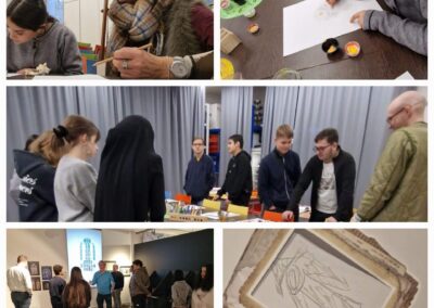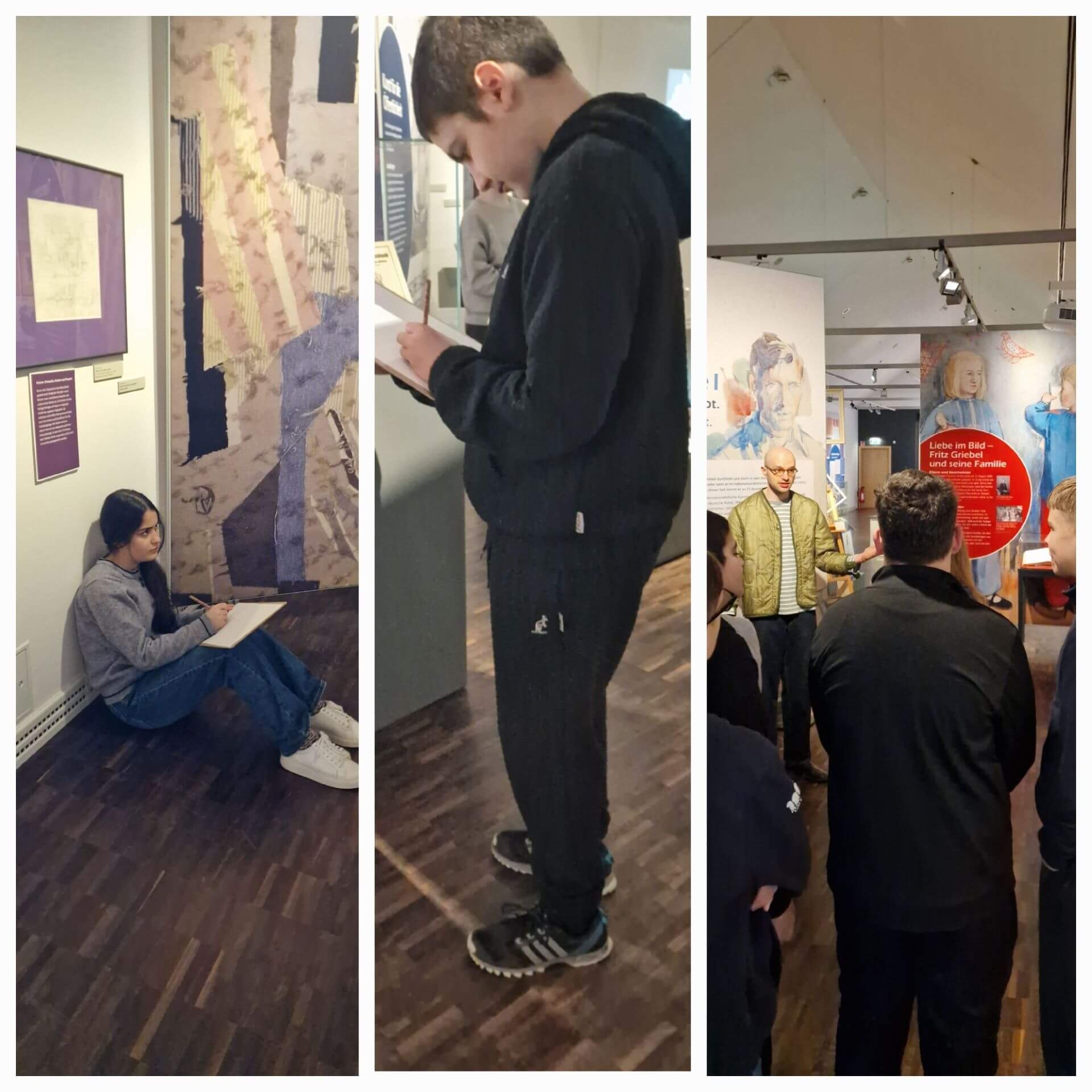 Die Schülerinnen und Schüler der 8.Klassen besuchten im Fach Kunst das Amberger Stadtmuseum. Aquarelle, Selbstbildnissen uvm. hat der Künstler Fritz Griebel gestaltet. Seine Werke wurden international bekannt und tatsächlich wurde er zu Lebzeiten Direktor der Akademie der Bildenden Künste in Nürnberg. Gemalt, gewebt und geschnitten so das Motto der Ausstellung. Auch wir durften malen, weben und schneiden. Unter Anleitung von Herrn Georg Wendl, dem wissenschaftlichen Mitarbeiter des Museums, und seinem Kollegen Peter Schmeiler, wurden uns viele Eindrücke zur aktuellen Ausstellung in einer museumpädagogischen Führung nähergebracht.