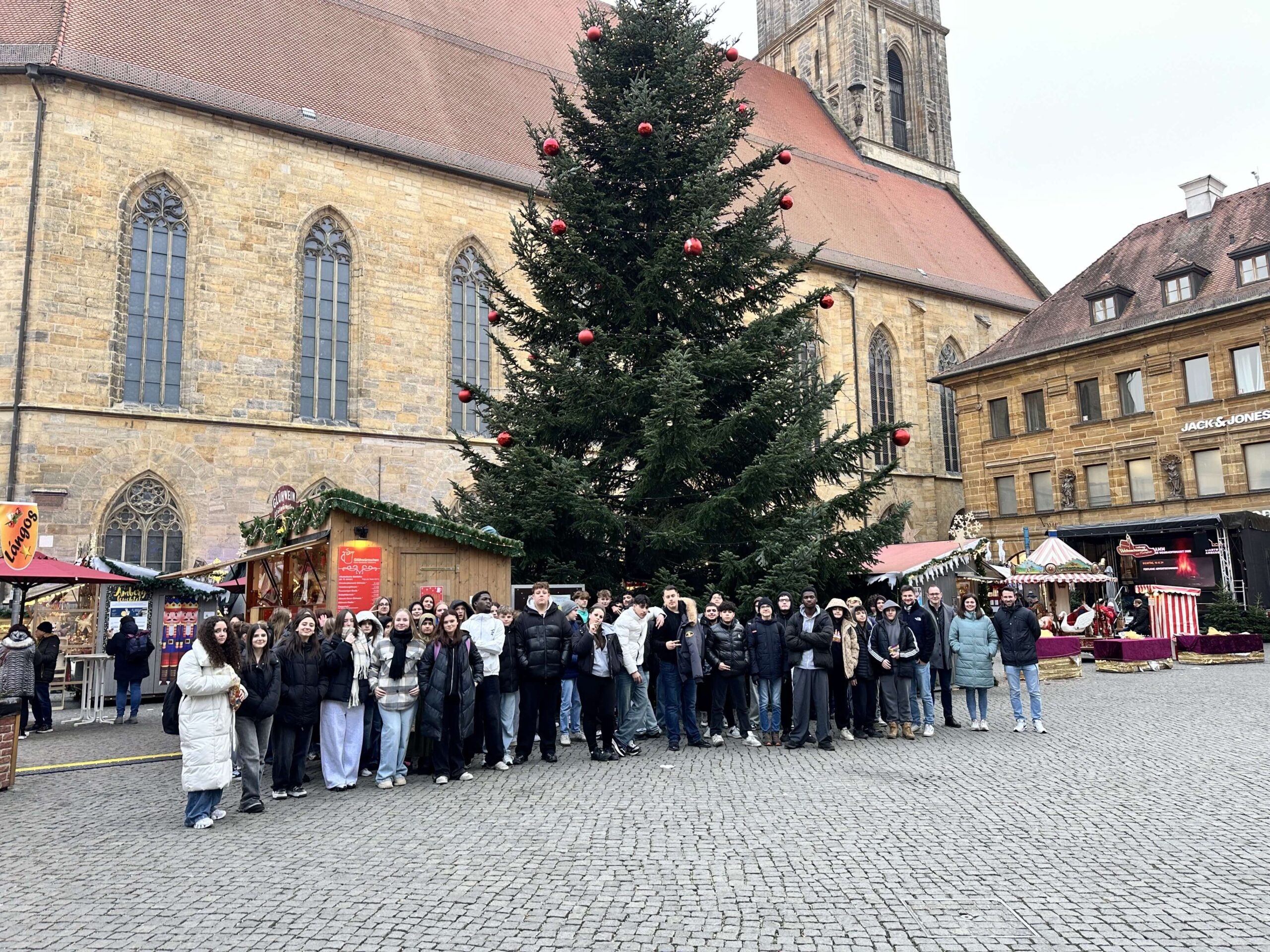 Am Mittwoch, 17.12. 2025 ließen die 8. und 9. Klassen entsprechend der christlichen Prägung unserer Gesellschaft das Kalenderjahr besinnlich auf dem Weihnachtsmarkt in Amberg ausklingen. Nach einer nachmittäglichen Wanderung von der Schule in die Innenstadt trotzte man der Kälte durch Kinderpunsch, Deftigem, Backwaren und Süßem. Ein schöner Jahresabschluss nach dieser anstrengenden Prüfungszeit, der Lust auf die anstehenden ruhigen Feiertage macht.