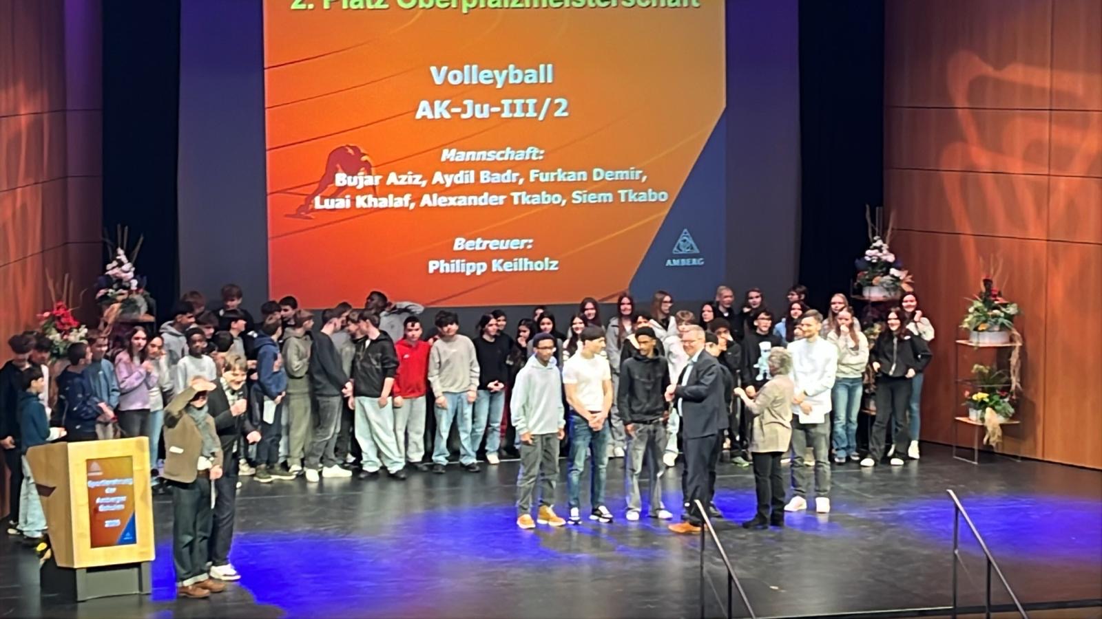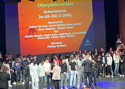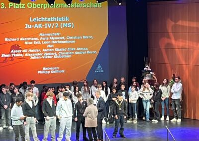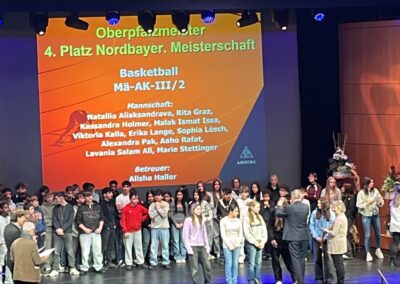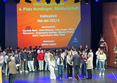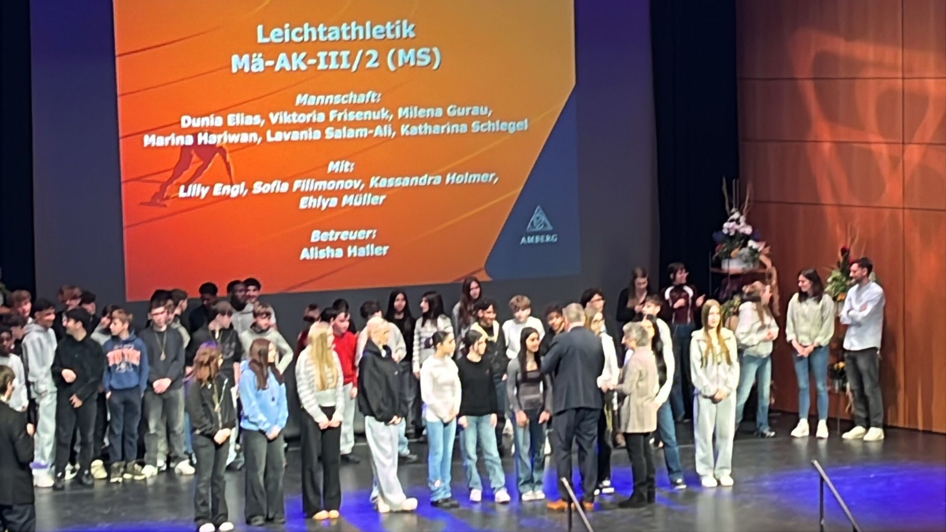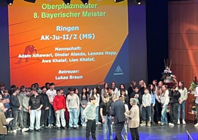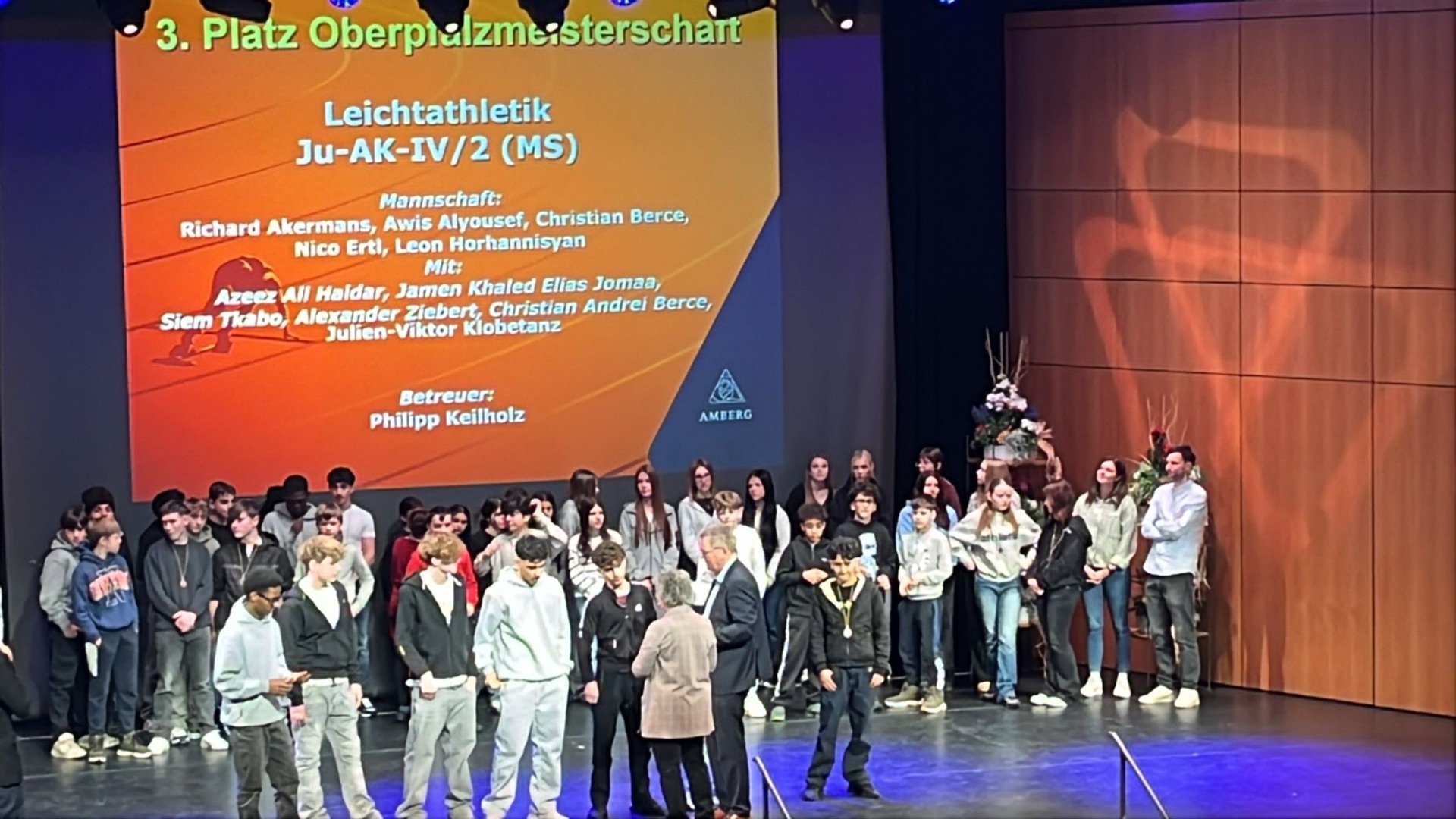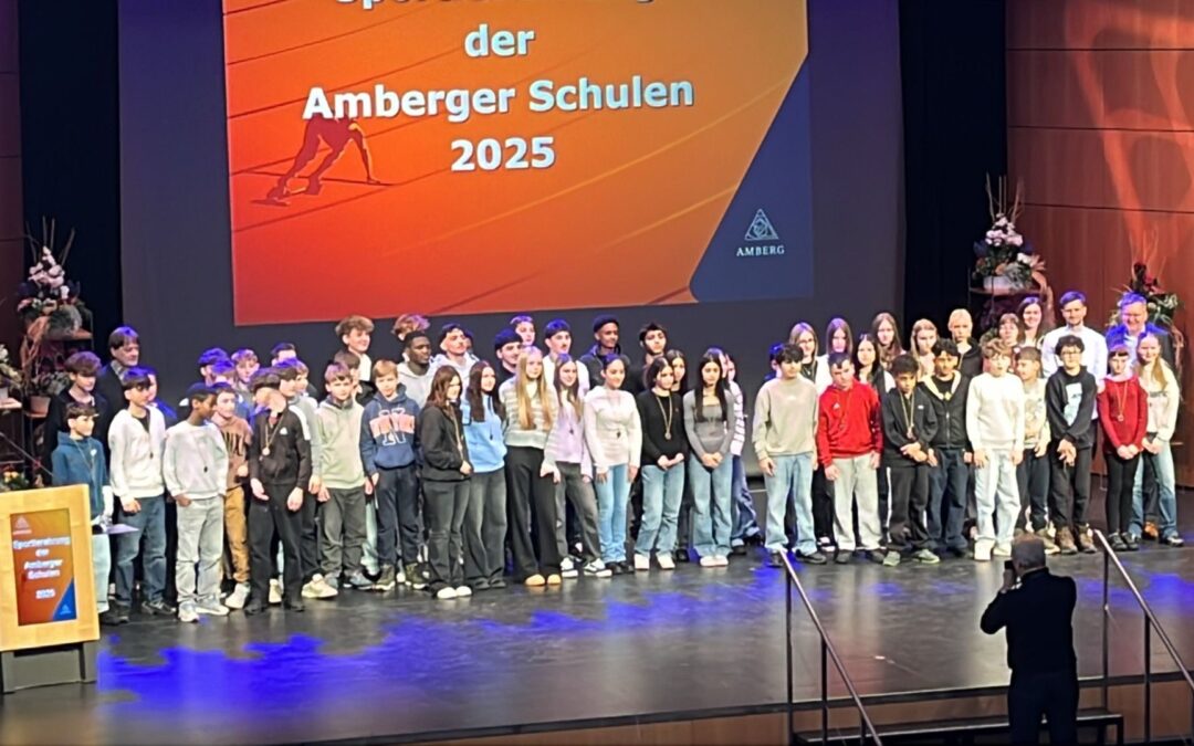 Am Freitag, den 30.01.2026, fand im ACC wieder die alljährliche Sportlerehrung der besten Schulsportler statt. Unsere Schule war, wie die letzten Jahre immer, mit den meisten Mannschaften daran vertreten. So wurden im Schuljahr 2024/25 Medaillen in den Sportarten Fußball, Ringen, Schwimmen, Basketball, Tischtennis, Volleyball und Leichtathletik errungen. Dreimal belegte man der 3. Platz im Nord-Bayernfinale, viermal den ersten bei einer Oberpfalzmeisterschaft, einmal den zweiten in einer Oberpfalzmeisterschaft und zweimal den dritten bei einer Oberpfalzmeisterschaft. Die ganze Schulgemeinschaft ist überaus stolz auf ihre starken Sportler.