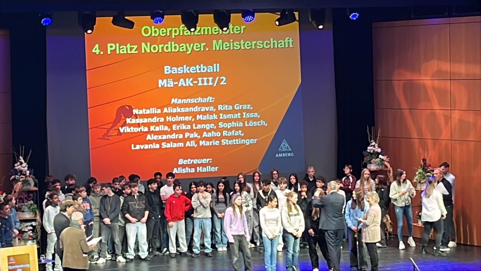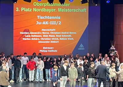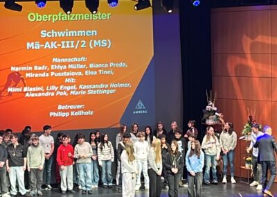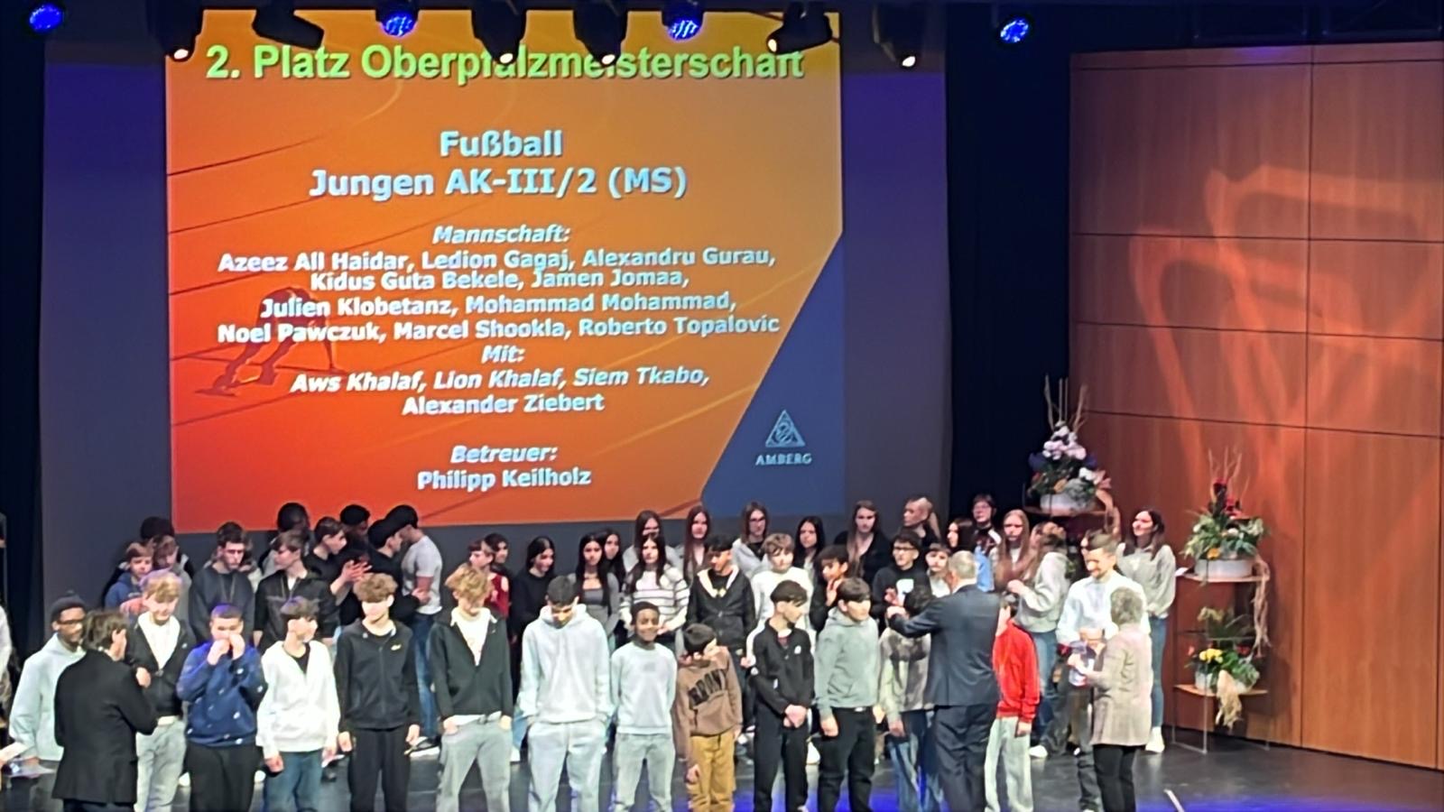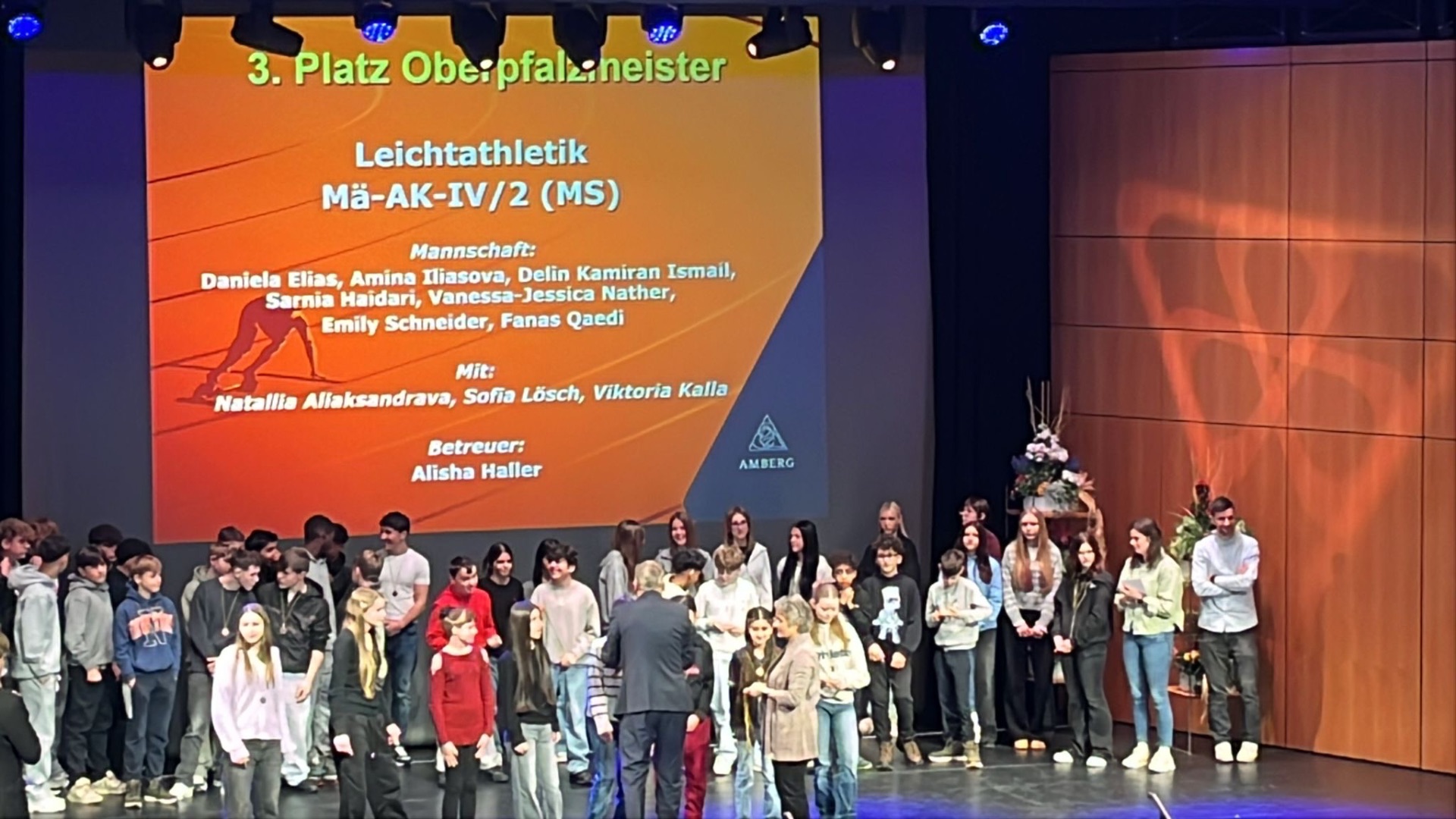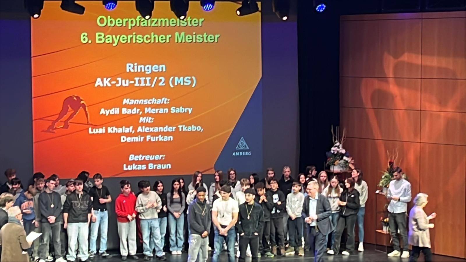 Am Freitag, den 30.01.2026, fand im ACC wieder die alljährliche Sportlerehrung der besten Schulsportler statt. Unsere Schule war, wie die letzten Jahre immer, mit den meisten Mannschaften daran vertreten. So wurden im Schuljahr 2024/25 Medaillen in den Sportarten Fußball, Ringen, Schwimmen, Basketball, Tischtennis, Volleyball und Leichtathletik errungen. Dreimal belegte man der 3. Platz im Nord-Bayernfinale, viermal den ersten bei einer Oberpfalzmeisterschaft, einmal den zweiten in einer Oberpfalzmeisterschaft und zweimal den dritten bei einer Oberpfalzmeisterschaft. Die ganze Schulgemeinschaft ist überaus stolz auf ihre starken Sportler.