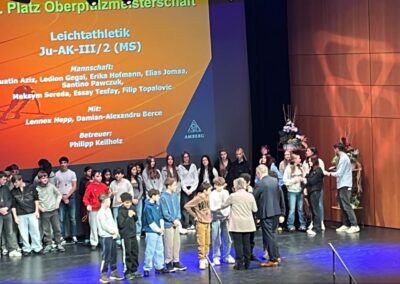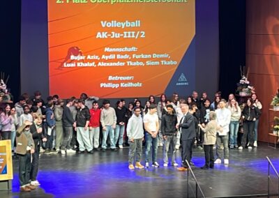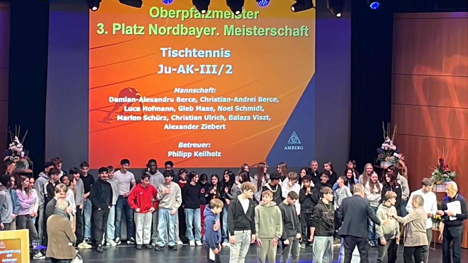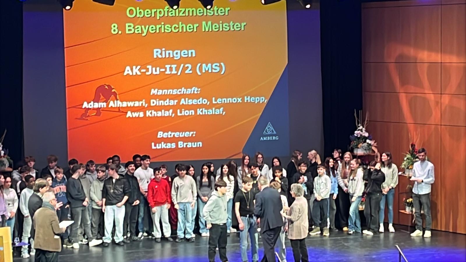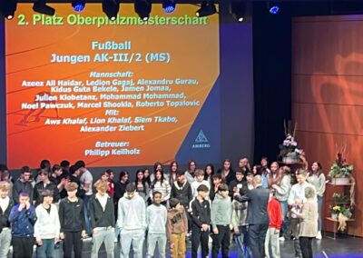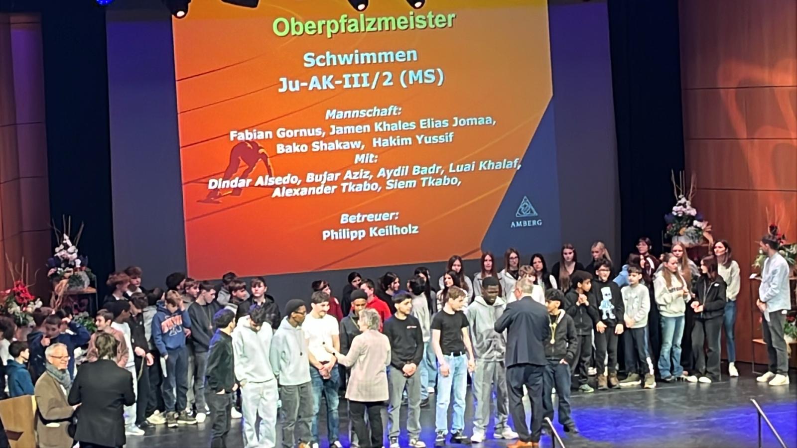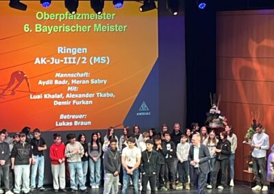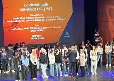 Am Freitag, den 30.01.2026, fand im ACC wieder die alljährliche Sportlerehrung der besten Schulsportler statt. Unsere Schule war, wie die letzten Jahre immer, mit den meisten Mannschaften daran vertreten. So wurden im Schuljahr 2024/25 Medaillen in den Sportarten Fußball, Ringen, Schwimmen, Basketball, Tischtennis, Volleyball und Leichtathletik errungen. Dreimal belegte man der 3. Platz im Nord-Bayernfinale, viermal den ersten bei einer Oberpfalzmeisterschaft, einmal den zweiten in einer Oberpfalzmeisterschaft und zweimal den dritten bei einer Oberpfalzmeisterschaft. Die ganze Schulgemeinschaft ist überaus stolz auf ihre starken Sportler.